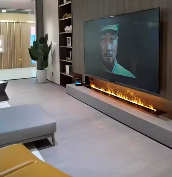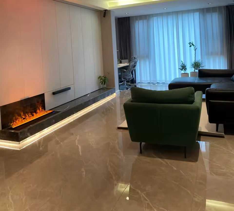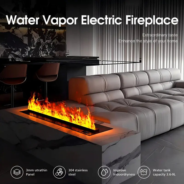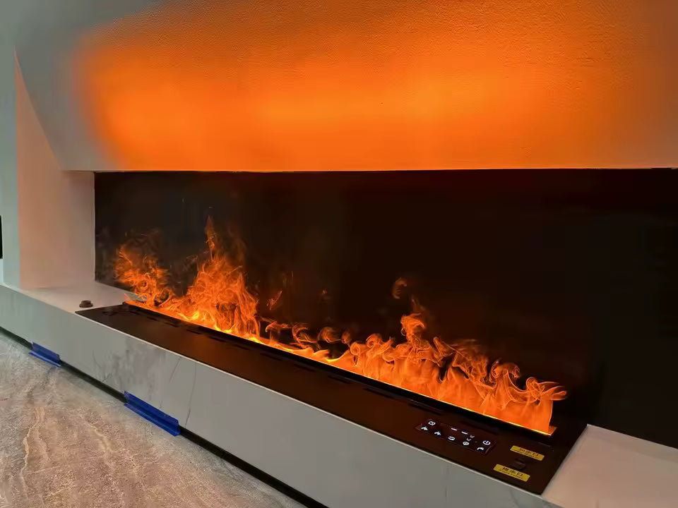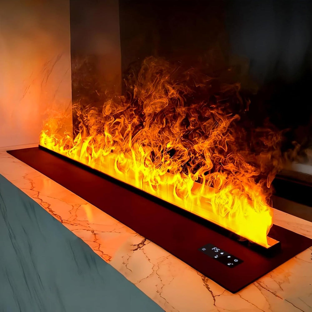 Answer 1: The water vapor technology converts purified water into fine particles using an ultrasonic atomization device, creating a realistic flame effect illuminated by LED lights. This method is eco-friendly, consuming only water with no traditional fuels needed.