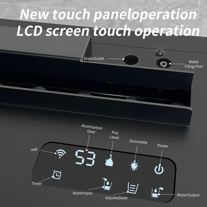 Water Supply System is Connect the water pipe to the fireplace water outlet for automatic water supply and App Wind Guard is the fireplace comes with app function